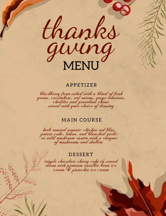 If the publishing of this webpage is beneficial to our suport by expressing article posts of the site to social media marketing accounts to have such as Facebook, Instagram and others or may also bookmark this website page while using title Thanksgiving Day Dinner Menu Vorlage Vorlage Postermywall Work with Ctrl + D for computer devices with Glass windows operating-system or Order + D for laptop devices with operating-system from Apple. If you are using a smartphone, you can also use the drawer menu on the browser you use. Be it a Windows, Macintosh, iOs or Android operating system, you'll be able to download images using the download button.